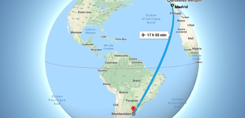 Après une escale à Madrid et un vol de plus de 12h, nous survolons le Brésil au levé du soleil
